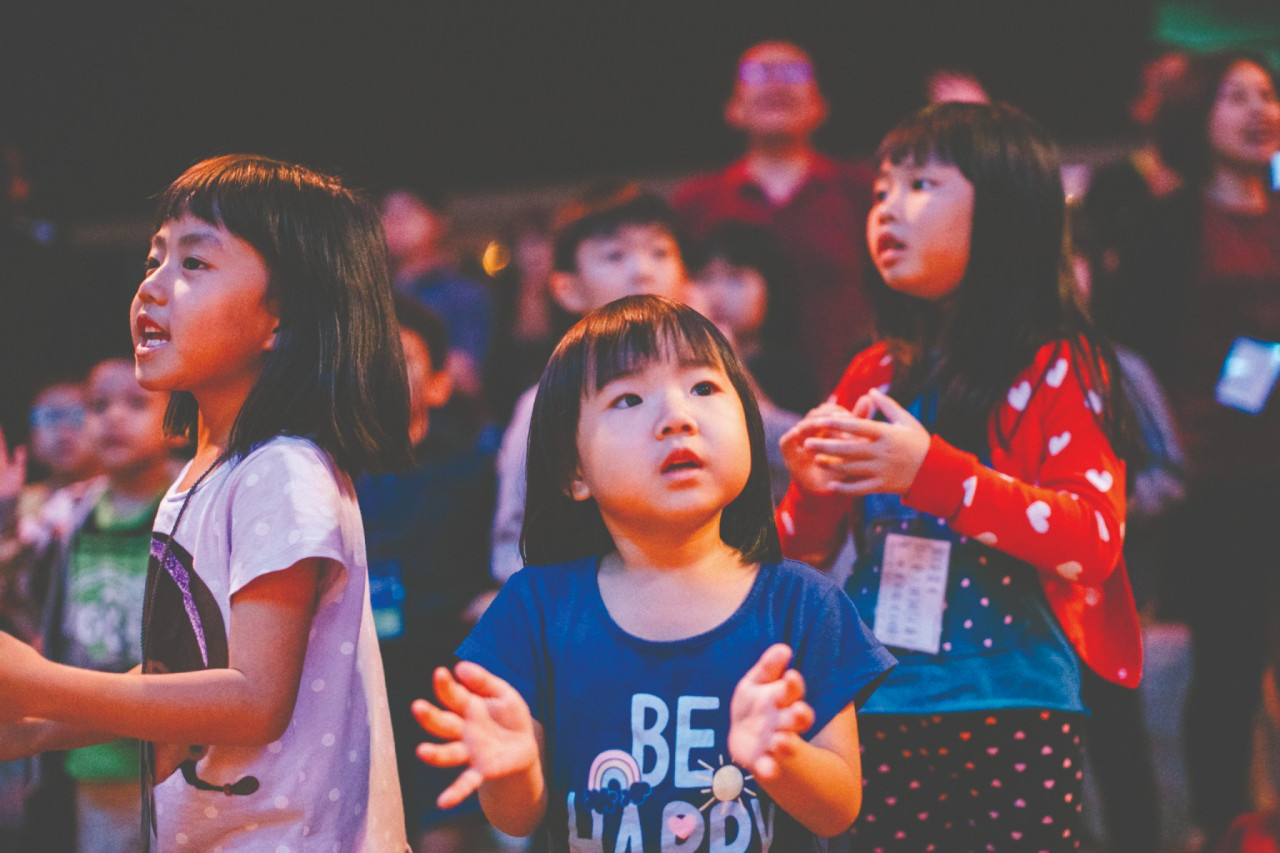 用稚嫩的歌声赞美主。