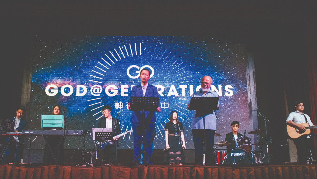 神在世代中看顾守护我们, 右为主题讲员卢龙光牧师,左为英文翻译陈逸耀弟兄。