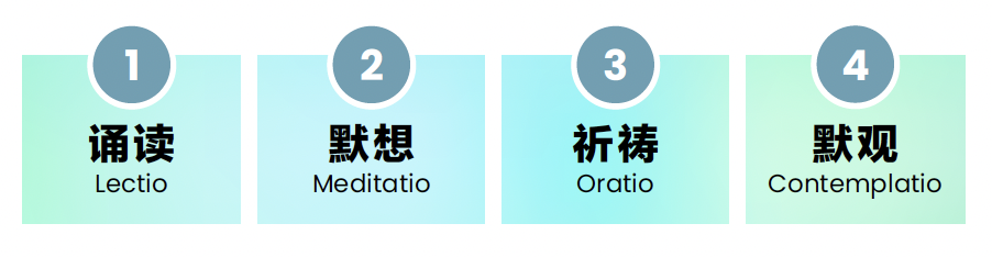12世纪,加陶先隐修会的院长纪果二世将“圣经诵祷”有系统地列出4个阶段: