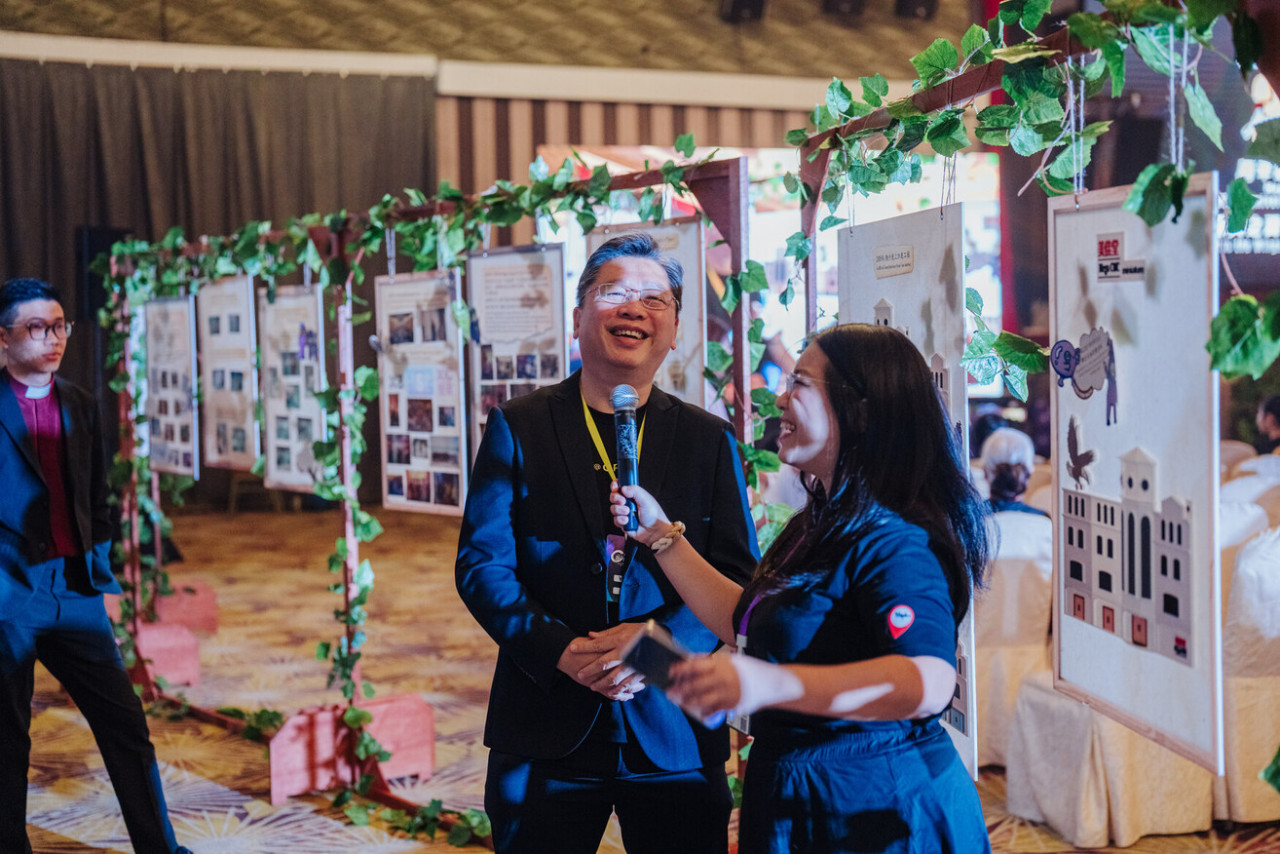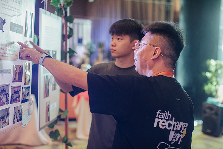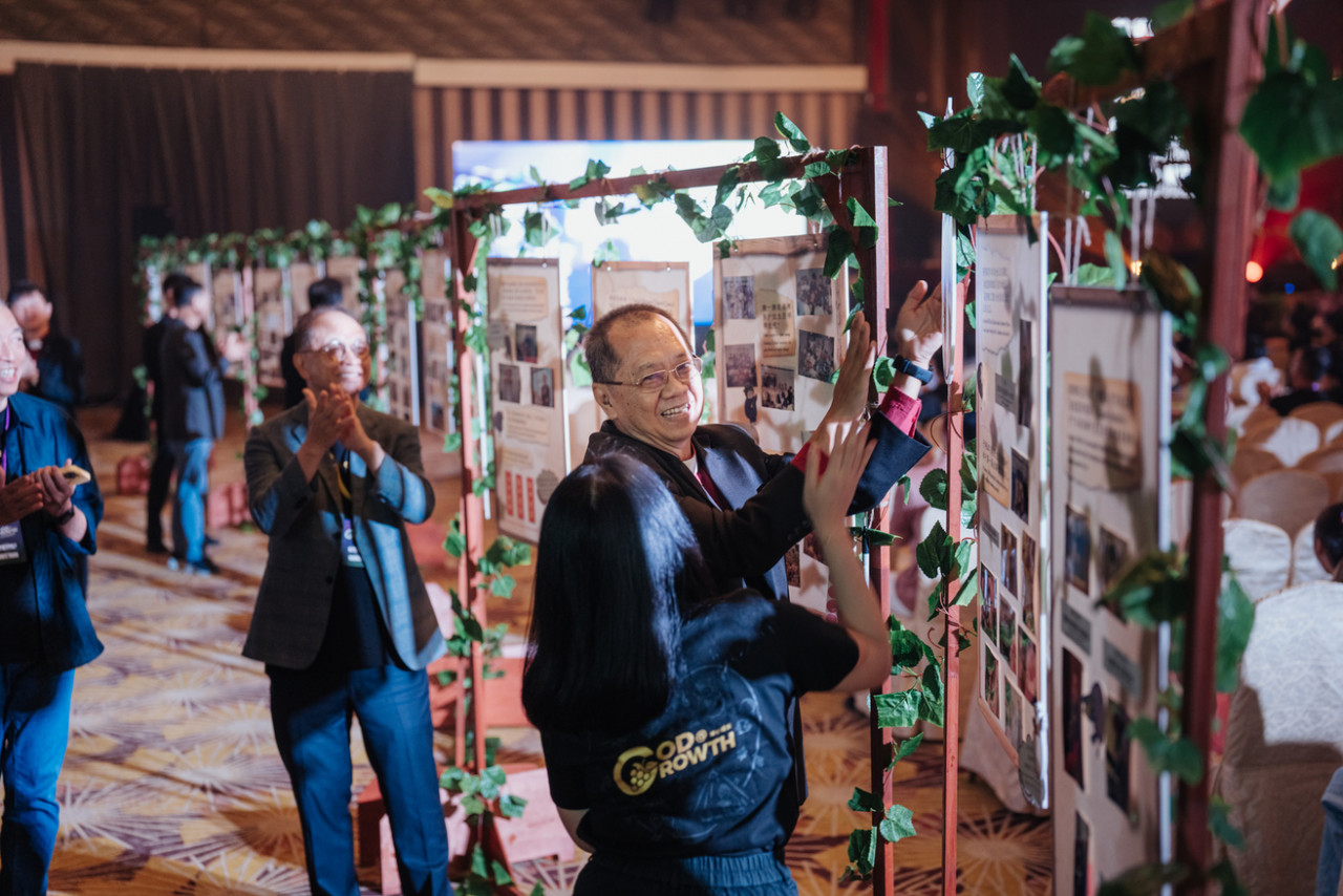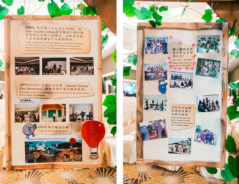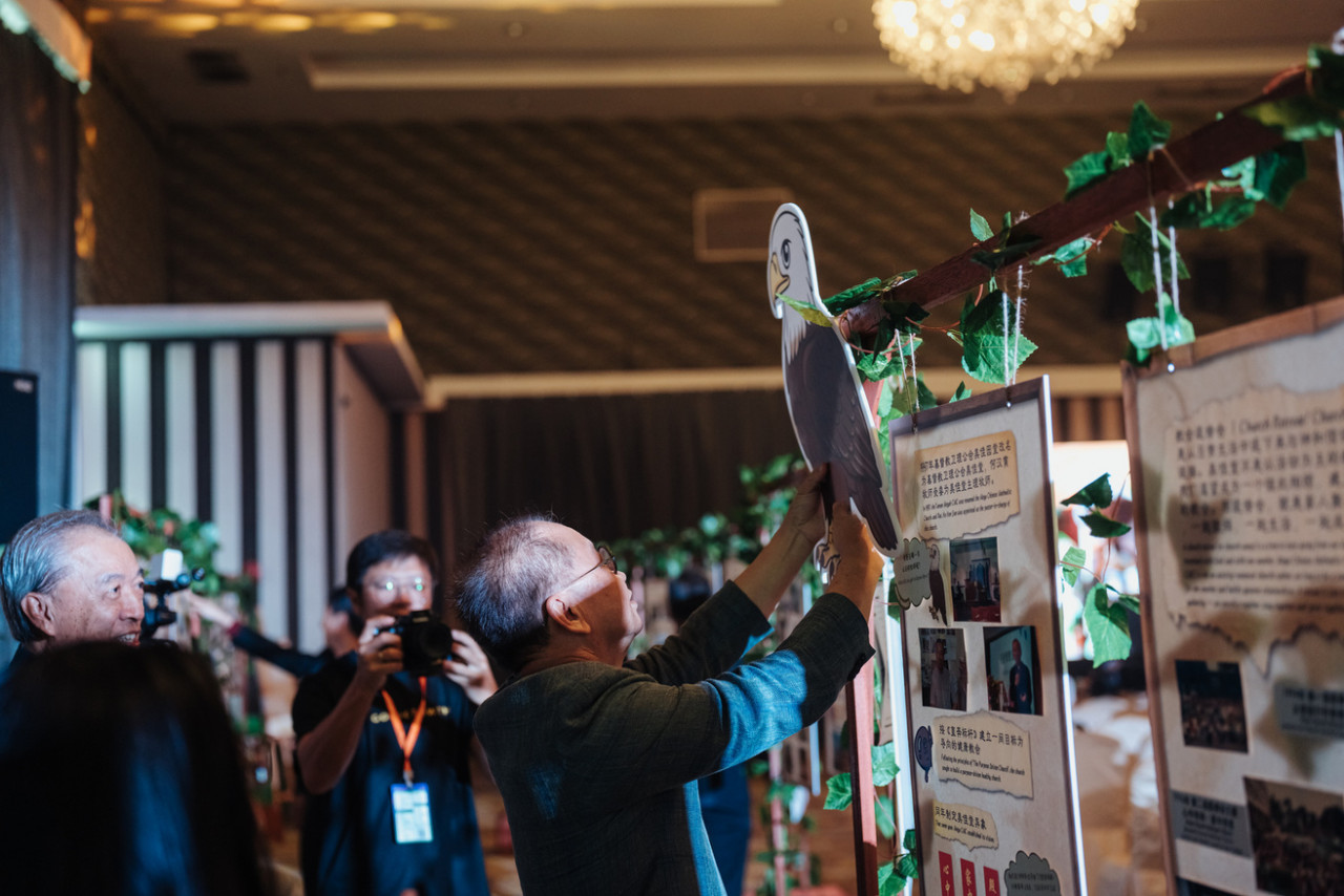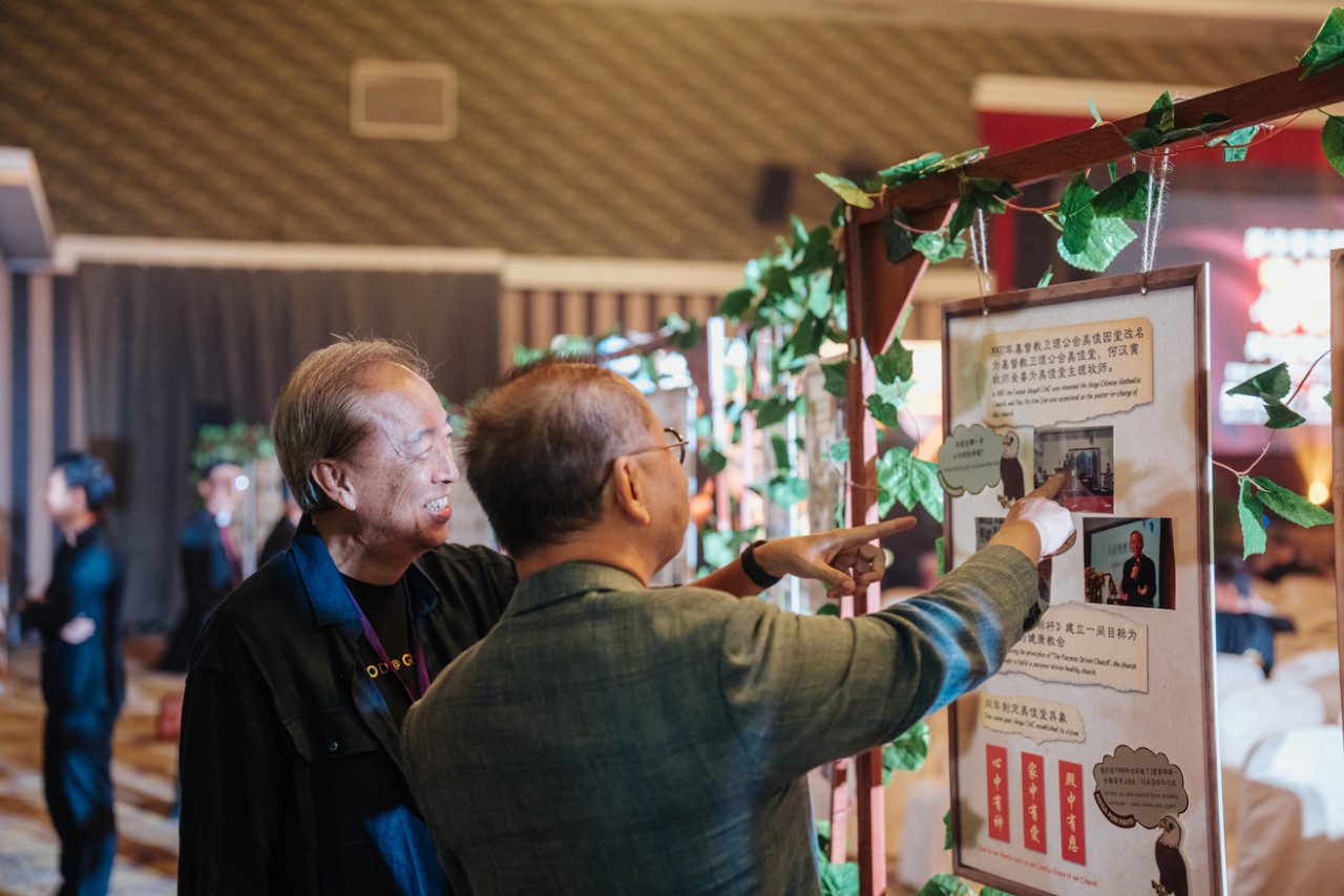会场另一侧,映入眼帘的是一条令人动容的“美佳堂历史走廊”。三十五年信仰旅程的各个驿站,精心陈列在一个个相框中,那些泛黄的旧照、灿烂的笑颜与讲台上的祷告,全都静静诉说着一段段恩典故事。