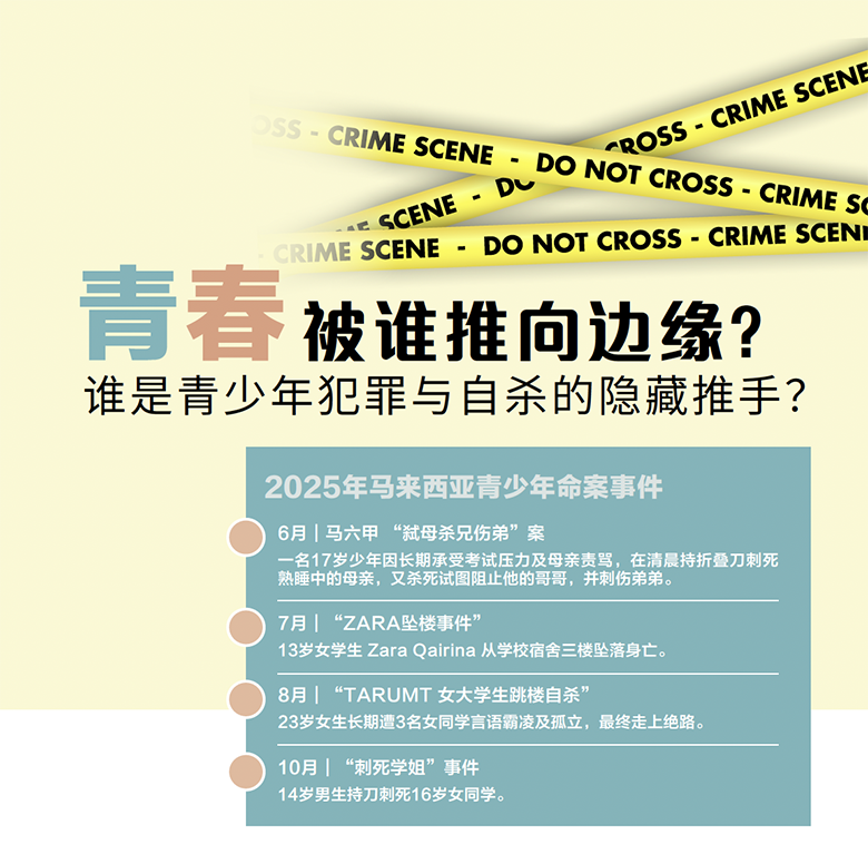 2025年短短数个月内,马来西亚青少年接连卷入多起命案——无论发生在家庭还是校园,无论是自杀还是他杀,无论是否与霸凌有关,社会都开始不断追问:“到底我们的青少年怎么了?”